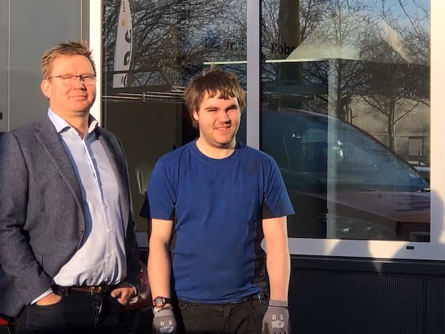Over de juiste partijen gesproken… "We gaan solliciteren. Het levert onder meer een gesprek op bij HOLGA METAALTECNIEK in Doetinchem", vertelt Ans. Marc Oudenampsen, directeur van HOLGA METAALTECHNIEK, neemt de tijd voor een uitgebreide kennismaking en rondleiding en Freddy houdt hier een goed gevoel aan over. Uiteindelijk besluit Marc Freddy een proefplaatsing aan te bieden. Marc organiseert goede werkbegeleiding voor Freddy. Omdat deze proefplaatsing succesvol verloopt, volgt hierna Freddy’s allereerste arbeidsovereenkomst als Algemeen Metaalbewerker bij HOLGA METAALTECNIEK te Doetinchem.